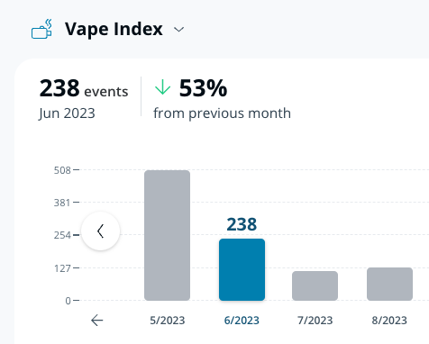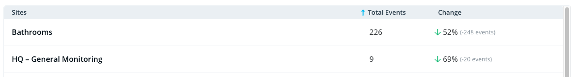 La **Analíticas de eventos** página facilita la visualización y el análisis de los datos de sus sensores. Ahora puede especificar qué lecturas evaluar para ver cuántas alertas se generan a diario, semanal o mensualmente. La página tiene un gráfico fácil de usar que ayuda a identificar tendencias y una tabla que muestra el recuento total de alertas y los cambios asociados.