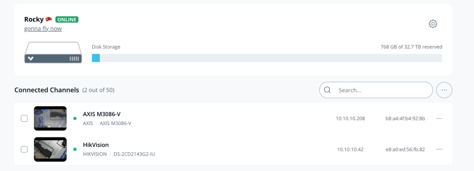 保持期間は、Verkada 以外のカメラの設定ページ、または Command Connector に現在接続されているチャンネル一覧から設定できます。
