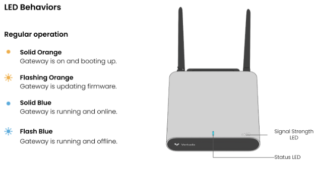 Learn more about the Verkada GC31/GC31-E Cellular Gateway status LEDs