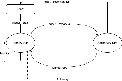 **Reintento manual — Una vez que la SIM secundaria esté activa, el usuario debe volver a cambiar manualmente a la SIM primaria si desea conectarse a través de la primaria.**