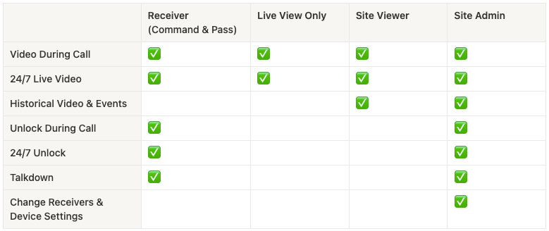 Verkada Intercom Receivers have the baseline receiver permissions. A user's intercom permissions for a site are based on their baseline and site-level roles.