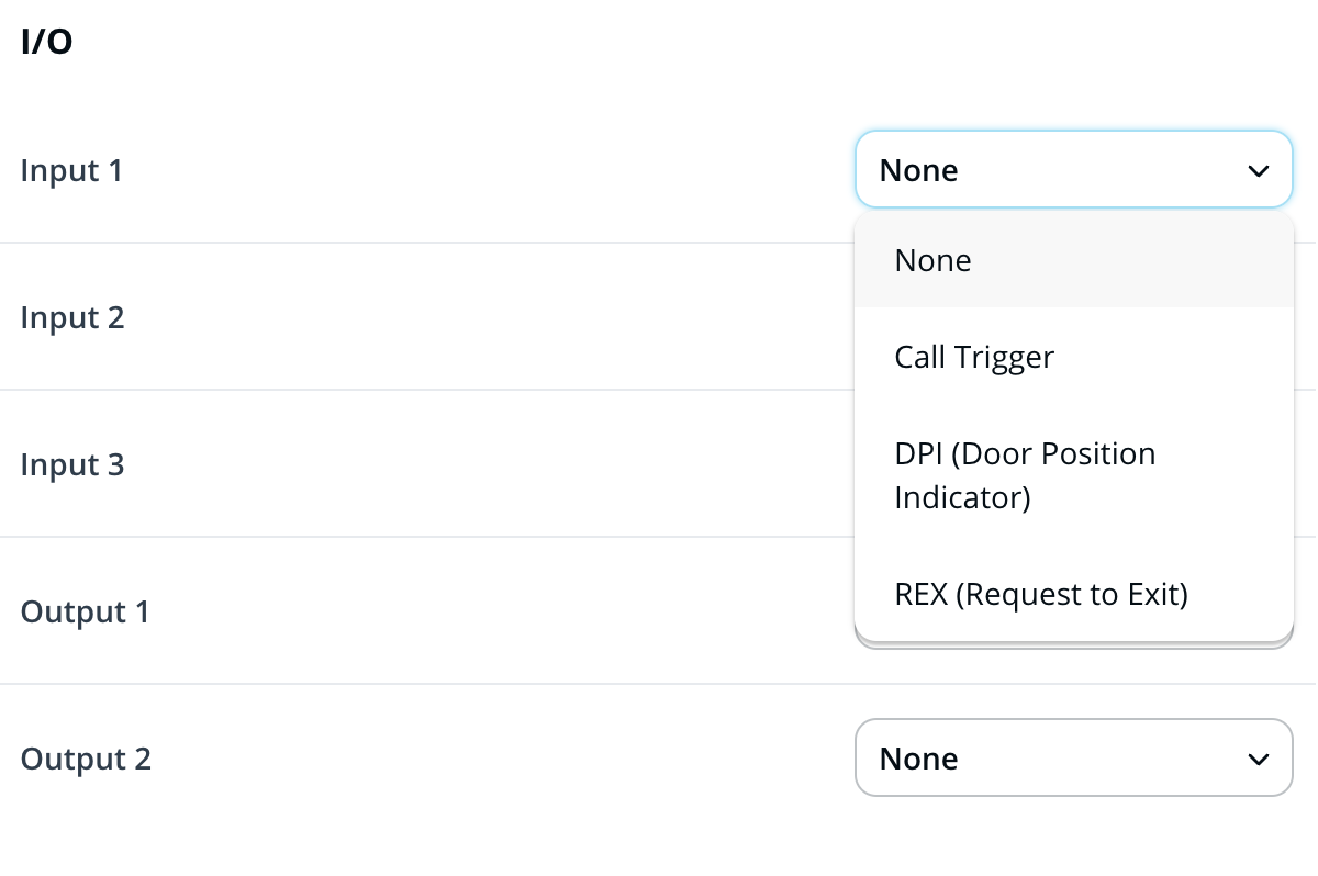 **各入力と出力について、ドロップダウンをクリックして適切なオプションを選択します。**