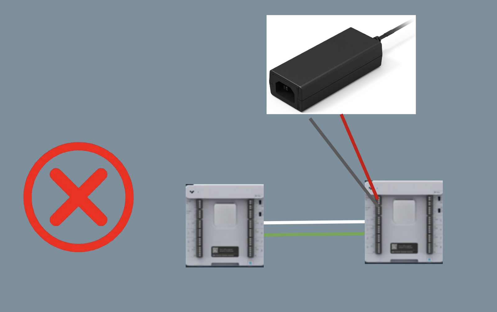 The Verkada ACC–WA–30W/12V Switching Power Supply for supplemental power must be used if output devices (sirens, strobes, etc.) are connected or cable length limits are reached. When using an external power supply (10-36V), ensure the RS-485 devices are connected to the same reference ground by including the device negative.