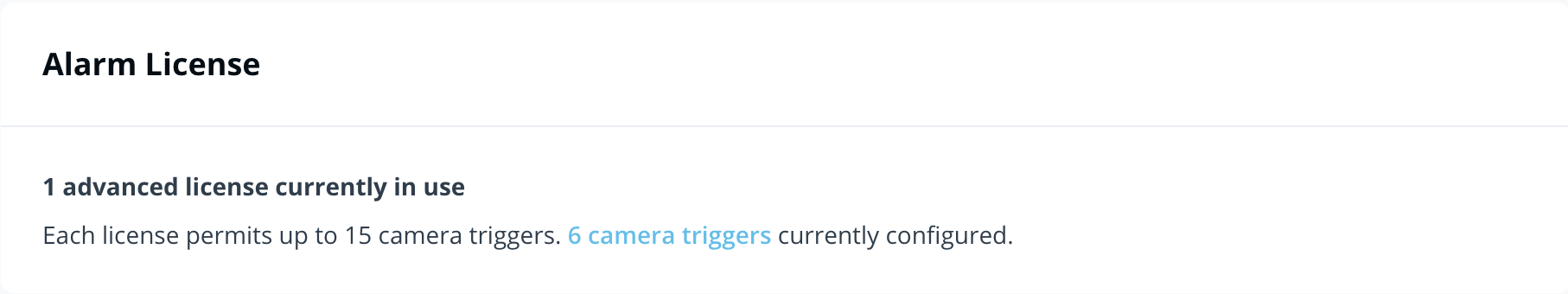 * 이 섹션에는 사이트의 활성 라이선스 수와 유형이 구성된 카메라 트리거와 함께 표시됩니다.