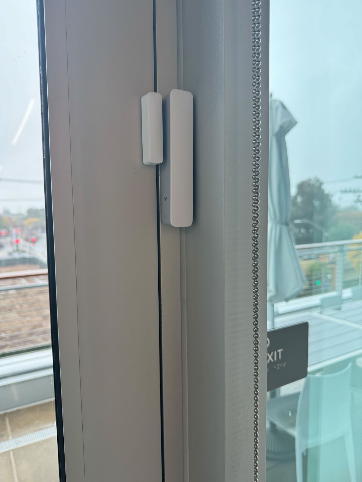 Signal strength degrades significantly when sensors are installed on metal door frames or walls due to signal reflection. To minimize this, use spacers between the door contact sensor and the metal frame to create separation. Spacers must be fashioned out of non-metallic materials.